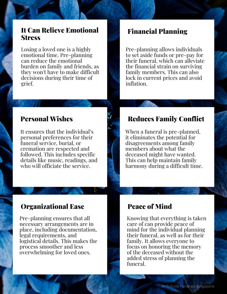 Pre-planning a funeral not only lightens the emotional load on your family but also offers financial security and logistical clarity. It allows you to make your wishes known and ensures that your final farewell reflects your life and values, providing comfort and support to your loved ones during a difficult time. By taking these steps now, you can create a more manageable and meaningful experience for those you leave behind.